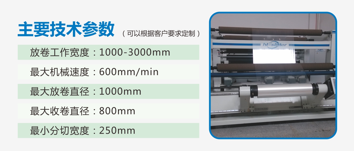 為滿足市場(chǎng)需求,我司設(shè)計(jì)研發(fā)了這款可分切2-6米不等材料幅寬的大型分切機(jī),可適用于 BOPP/OPP/CPP/PET/PE/PVC紙張等寬幅材料的分切。